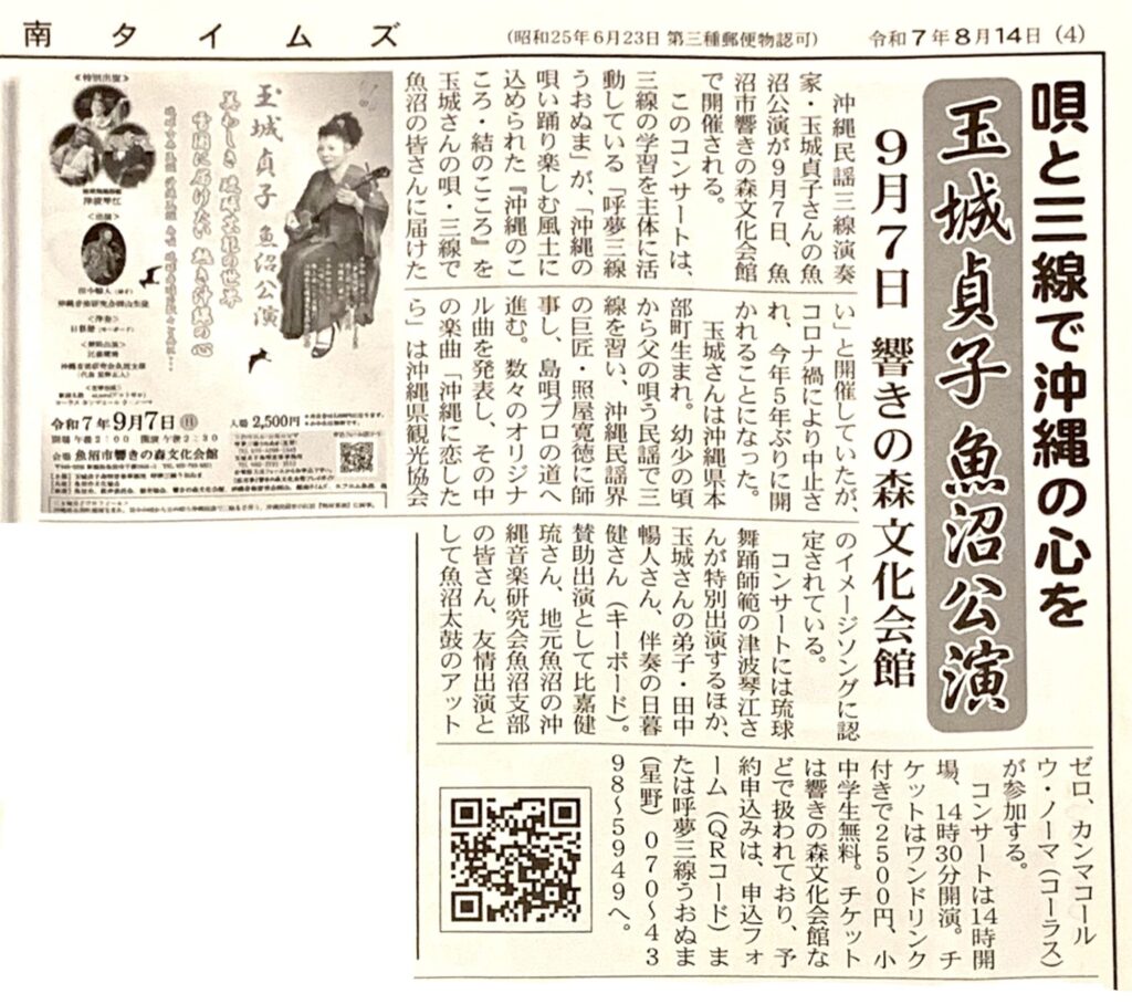 この魚沼の地にも沖縄の音楽を好きな方々が、さんしんを手習い、歌って下さる心に、熱い情けを感じております。